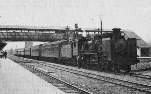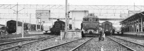 右から特急「やまばと1号」 急行「蔵王」 423(ED78) 1324(C11) 特急「やまばと2号」 447