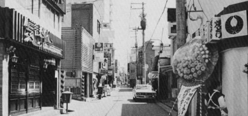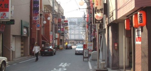 「霊道小路」迷路のような小路がいりくんだ通りも、現在は市内の代表的歓楽街の一つとなった。