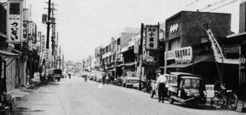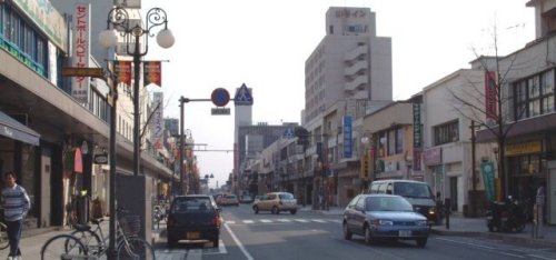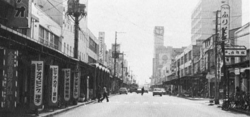 山形では先べんをつけたアーケードの街。雨でもぬれないで買い物ができる。ダットサンが往時をしのばせる。