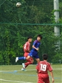 山東陣営で、跳ねたボールが動きを止めたと思ったら、周りにだれもいない。カザマGKと一対一になって、入れられてしまった