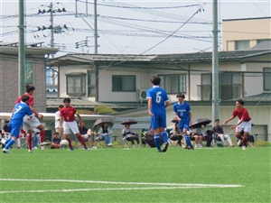天童バックより早くボールを支配して天童GKのニアサイドに強烈なシュート。ボールは体に隠れて見えず