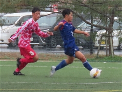少ないチャンスの中、リューヤが頭で日大GKと競る
