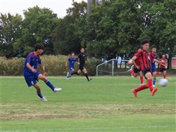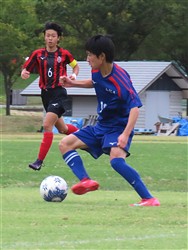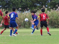 守りのかなめのトミー、得点をねらってドリブルをしかけます
