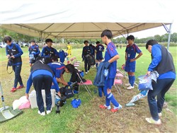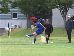 台風22号の影響で曇りの天候の酒田公益大グランド
