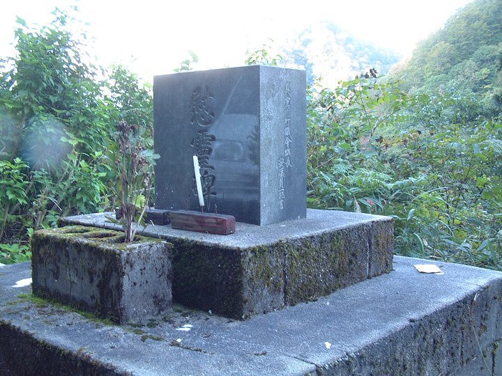 ダムの見えるとこに慰霊碑 七名の霊が眠っているのだそうだ |