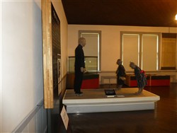 内部の天井や床を斜めの板張りにしている造りもほかに例を見ないものです。