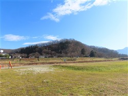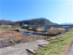 青空の下の馬見ヶ崎河川敷。双月橋を工事しているようだ。