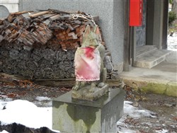 それで正月の連休最後の4日、いつものように馬見ヶ崎川河畔を散歩し、昨年11,12月に何回か熊が出現した山形大橋手前から、右に入って天満神社に行ってみました。