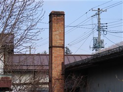 高さはあまりありませんが、立派な赤煉瓦煙突です。