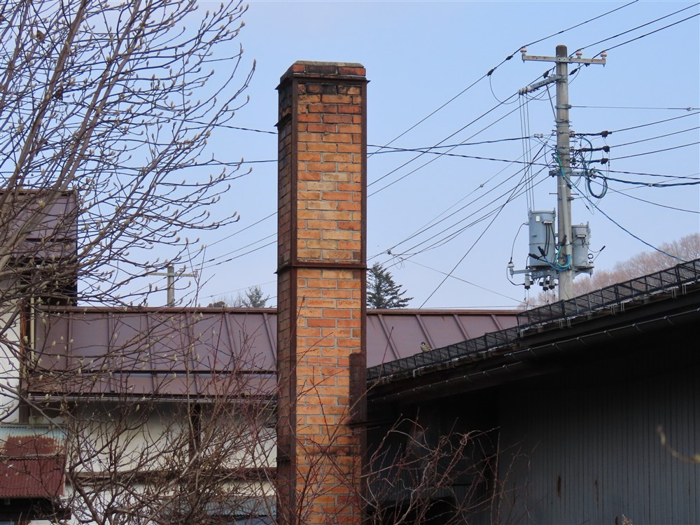 高さはあまりありませんが、立派な赤煉瓦煙突です。